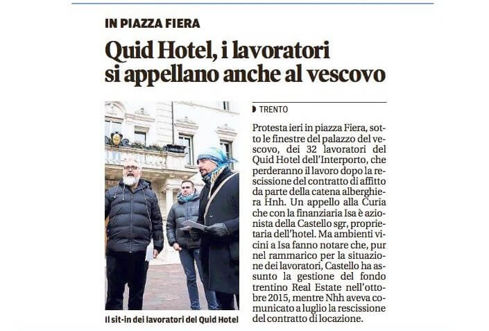Quid hotel, il vescovo incontrerà i 32 dipendenti L’appuntamento venerdì. Picchetti (Uiltucs): «L’eletto da dio ci ascolta, quello dal popolo no»