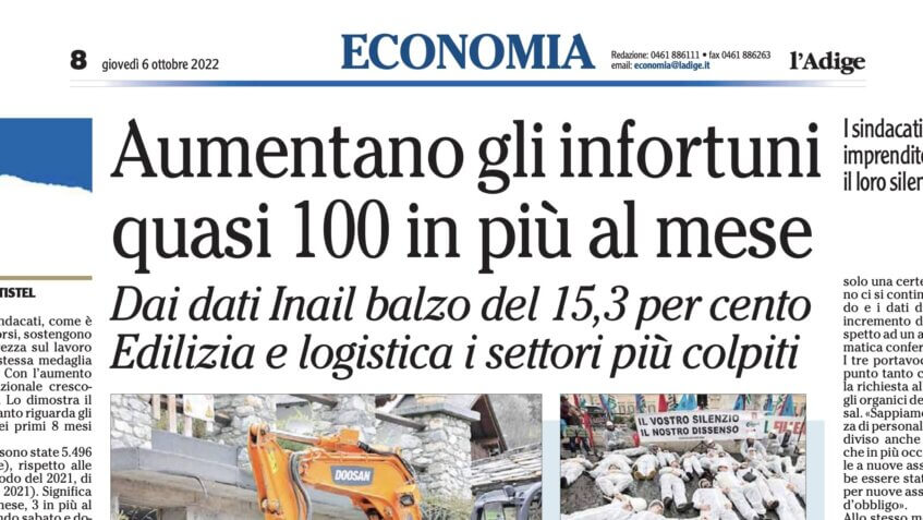 «A parole la sicurezza sul lavoro continua ad essere una priorità per la Giunta provinciale e per le imprese trentine. Non possiamo però non constatare purtroppo come si tratti di parole che restano tali» il primo commento di Manuela Faggioni Sella, Katia Negri e Alan Tancredi per Cgil Cisl Uil. I sindacati su questo tema sono da sempre piuttosto critici nei confronti di Piazza Dante. «Nessun impegno nuovo – è la loro interpretazione – è stato assunto su questo tema, mentre tutte le nostre sollecitazioni sono cadute nel vuoto. Abbiamo solo una certezza, e cioè che in Trentino ci si continua a infortunare lavorando e i dati di agosto di Inail con un incremento di oltre il 15 per cento rispetto ad un anno fa ne sono una drammatica conferma».