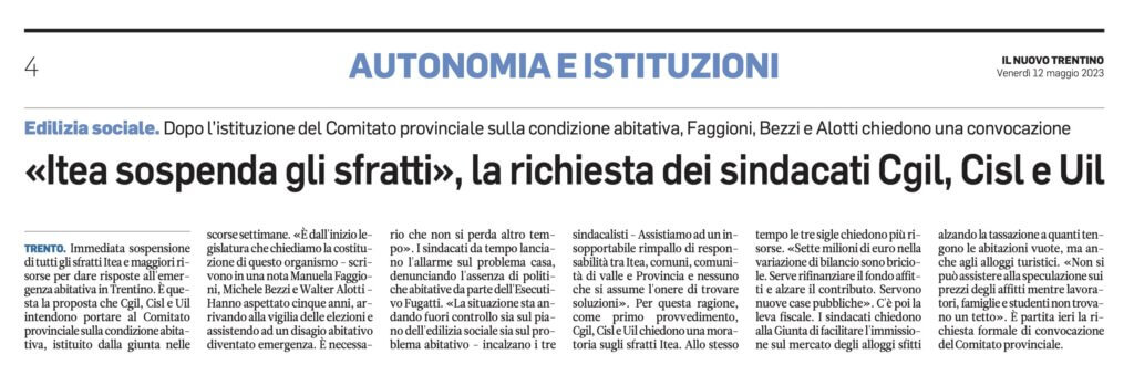 Comune di Trento. Su nidi e seconde case i sindacati chiedono maggiore coraggio. Oggi pomeriggio primo confronto con Palazzo Thun. Cgil Cisl Uil: importante adeguare le soglie Icef per sterilizzare l’inflazione e aumentare le aliquote sulle secone case sfitte Oggi ...