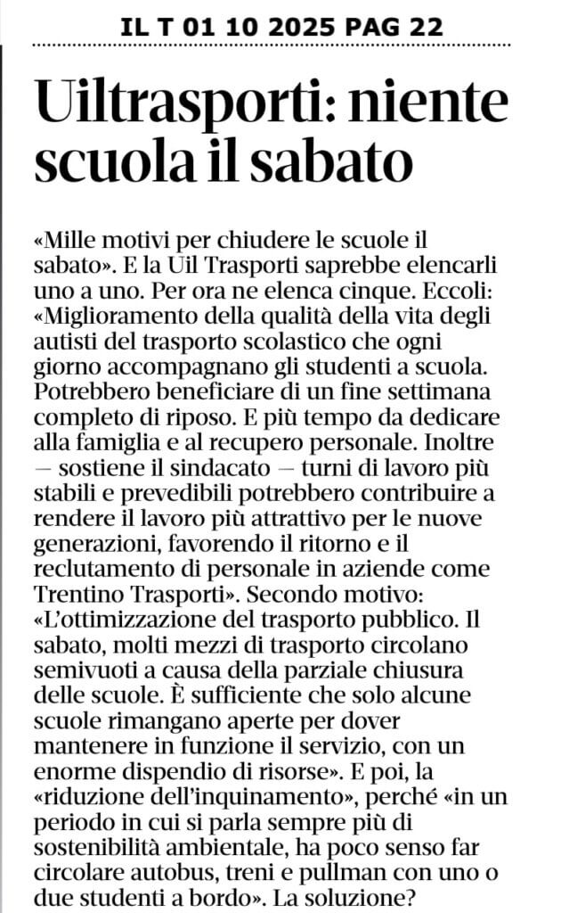 🚆 Riapertura della Ferrovia della Valsugana il 9 dicembre 2025? Dall’elettrificazione alla semplice predisposizione. Una breve pausa per programmare nuove chiusure nel 2026 e non solo. Trento, 13 ottobre 2025 – La UILTrasporti del Trentino esprime profonda preoccupazione e forte ...