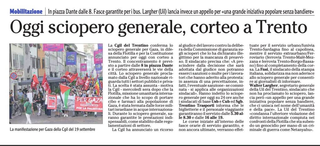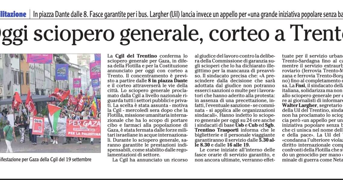 Trento, 09 ottobre 2025 Oggetto: via Grazioli – dichiarazioni del sindaco da brivido Via Grazioli: una viabilità al collasso. Preoccupazione per l’ennesimo intervento improvvisato Trento, 9 ottobre 2025 – Apprendiamo con preoccupazione l’intenzione del Sindaco Franco Ianeselli di rimuovere i ...