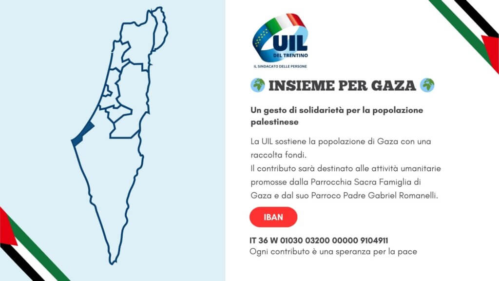 Un gesto di solidarietà per la popolazione palestinese La UIL sostiene la popolazione di Gaza con una raccolta fondi. Il contributo sarà destinato alle attività umanitarie promosse dalla Parrocchia Sacra Famiglia di Gaza e dal suo Parroco Padre Gabriel Romanelli. ...