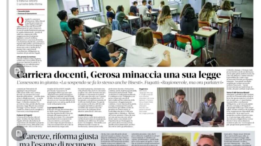 Quando l’ex assessore all’Istruzione Mirko Bisesti (Lega) ha presentato un nuovo disegno di legge sulla carriera docenti, l’assessora all’Istruzione in carica, Francesca Gerosa (Fratelli d’Italia) ha denunciato lo «sgarbo istituzionale», perché di solito un componente della maggioranza non fa proposte legislative senza il via libera dell’assessore o assessora di merito. Una fiammata di polemica, un botta e risposta tutto politico, poi il silenzio. E nel silenzio Gerosa ha meditato la mossa successiva, quella che ha portato i due a una sorta di «conciliazione obbligatoria» su mandato del presidente Fugatti.