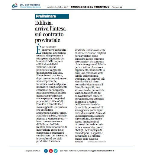 Comunicato stampa UIL del Trentino – 28/6/ 2018 Incremento dell’1,6% delle denunce di infortunio sul lavoro nel 2017, dopo i già preoccupanti dati in crescita nel 2016 (+4% sul 2015) ...
