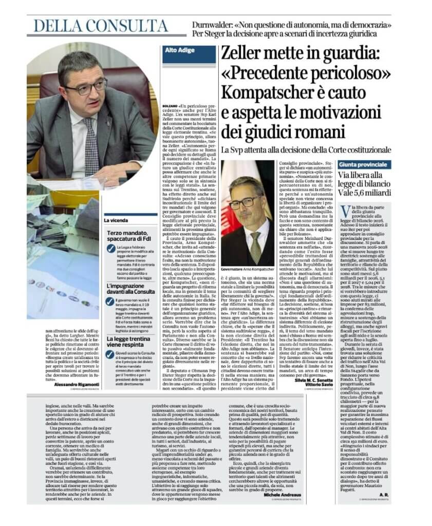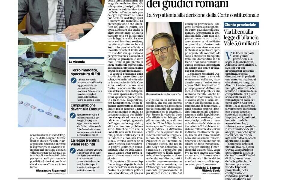 Corriere del Trentino – Sabato 8 Novembre 2025