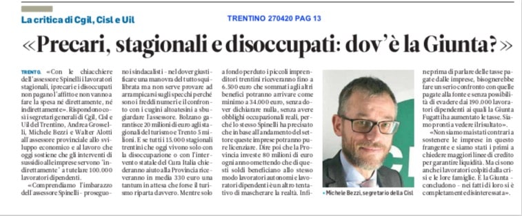 5 agosto 2020 – Trentino, Corriere del Trentino