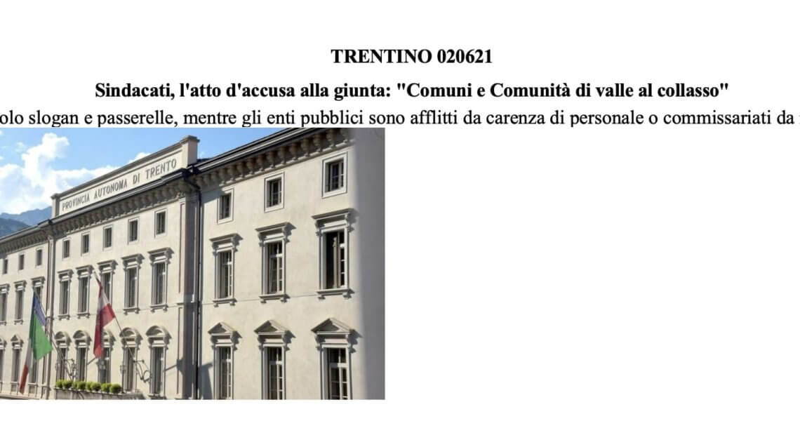 PRESIDENTE, QUALE CONFRONTO? Relazione alla Manovra di assestamento: Fugatti certifica il “niet” al rinnovo contrattuale ma chiede collaborazione con i dipendenti pubblici. Ennesimo smacco per i dipendenti pubblici trentini: se ...