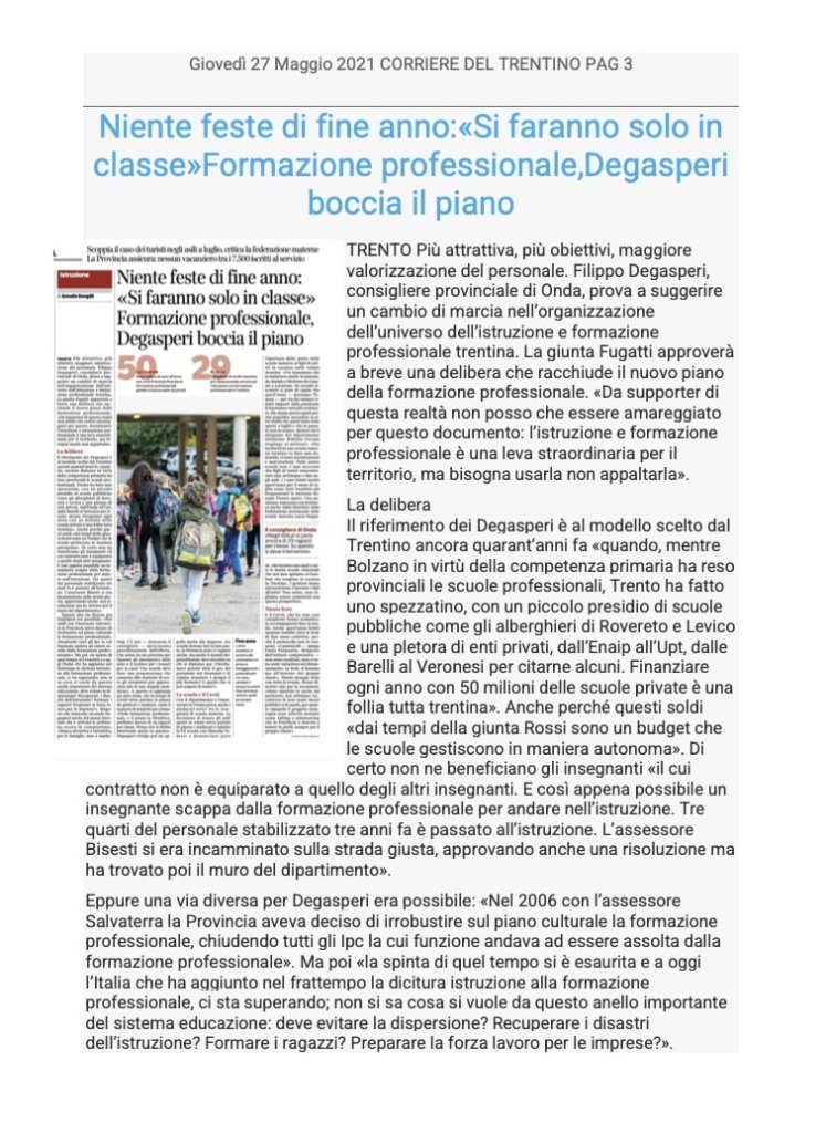 31 agosto 2021 – Corriere del Trentino