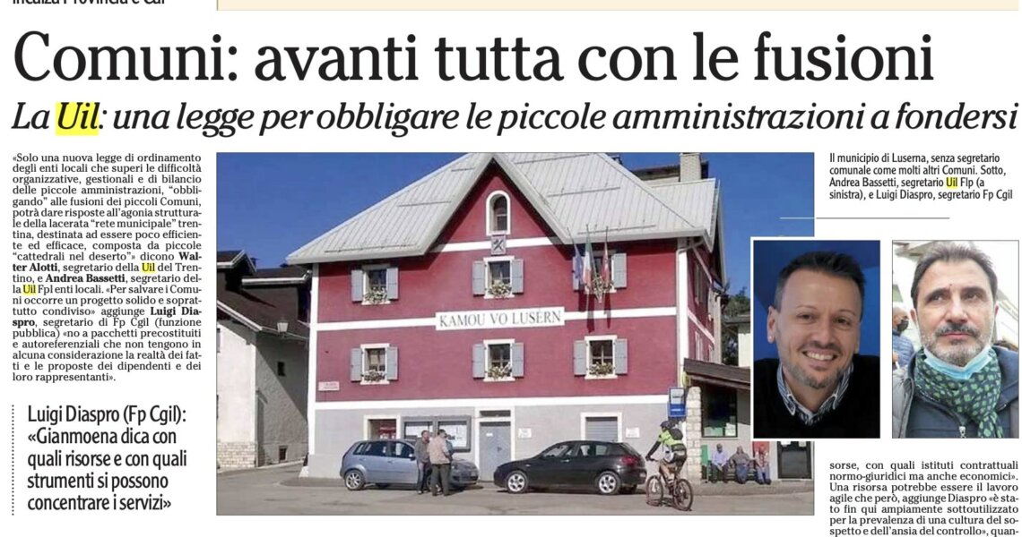 Trento, 31 luglio 2024 APPROVAZIONE LEGGE D’ASSESTAMENTO 2024 – 480 MILIONI PER IL PUBBLICO IMPIEGO: GARANZIA PER GLI OBIETTIVI FUTURI DELLA UIL FPL EE.LL. PAT – COMUNI E COMUNITÀ’ – ...
