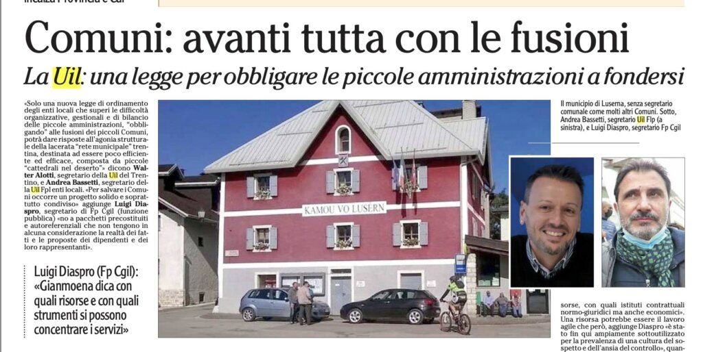 Trento, 31 luglio 2024 APPROVAZIONE LEGGE D’ASSESTAMENTO 2024 – 480 MILIONI PER IL PUBBLICO IMPIEGO: GARANZIA PER GLI OBIETTIVI FUTURI DELLA UIL FPL EE.LL. PAT – COMUNI E COMUNITÀ’ – ...