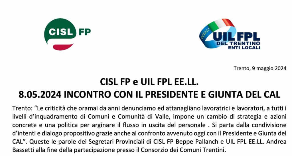 Stanziati 151,7 Milioni di Euro per Arretrati e Revisione Contrattuale del Pubblico Impiego: La Soddisfazione di CISL FP e UIL FPL 31 agosto 2024 TRENTO. “Siamo pronti a chiudere gli ...