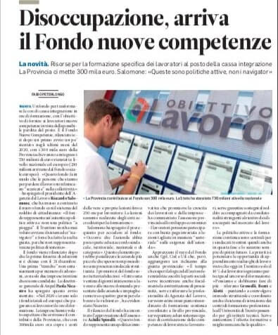 La novità. Risorse per la formazione specifica dei lavoratori al posto della cassa integrazione La Provincia ci mette 300 mila euro. Salomone: «Queste sono politiche attive, non i navigator»