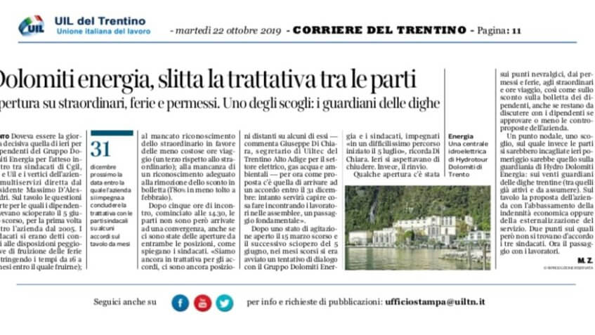 Dopo uno stato di agitazione aperto il 15 marzo scorso e il successivo sciopero del 5 giugno, nei mesi scorsi si era avviato un tentativo di dialogo con il Gruppo Dolomiti Energia e i sindacati, impegnati «in un difficilissimo percorso iniziato il 5 luglio», ricorda Di Chiara. Ieri si aspettavano di chiudere. Invece, il rinvio.
