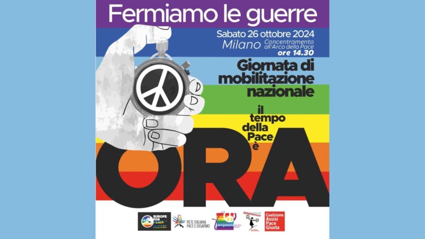 Per la risoluzione non violenta dei conflitti, per una politica estera italiana ed europea di pace, di cooperazione e di sicurezza comune. Per il disarmo, per vivere in pace, per la giustizia sociale e climatica, per il lavoro, per i diritti e la democrazia.