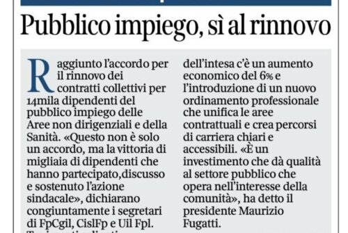 Leggi TuttoPubblico impiego, contratti per 14mila. Aumenti del 6%, in tutto 12,5 milioni