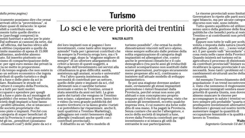 Lo sci e le vere priorità dei trentini – Walter Alotti