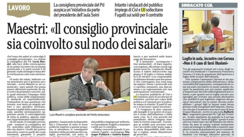 Maestri: «Il consiglio provinciale sia coinvolto sul nodo dei salari»