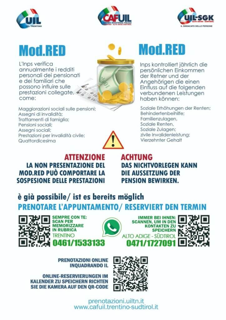 Mod.RED: ATTENZIONE LA NON PRESENTAZIONE DEL MOD.RED PUÒ COMPORTARE LA SOSPENSIONE DELLE PRESTAZIONI