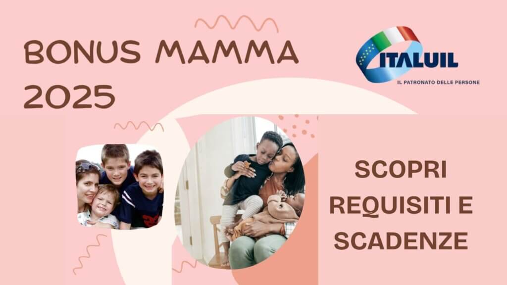 BONUS MAMMA 2025 Il Bonus mamma 2025 è un sostegno economico destinato alle madri lavoratrici con figli a carico, previsto dalla Legge di Bilancio 2024.L’importo o l’esonero contributivo varia in base al numero dei figli e al tipo di contratto ...