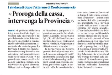 Cassa integrazione. La Provincia può estendere l’ammortizzatore sociale con risorse proprie. Cgil Cisl Uil: il problema di una copertura insufficiente esiste. Le imprese sollecitino l’assessore Spinelli “Il problema della cassa integrazione insufficiente per i lavoratori della ristorazione e dei pubblici ...