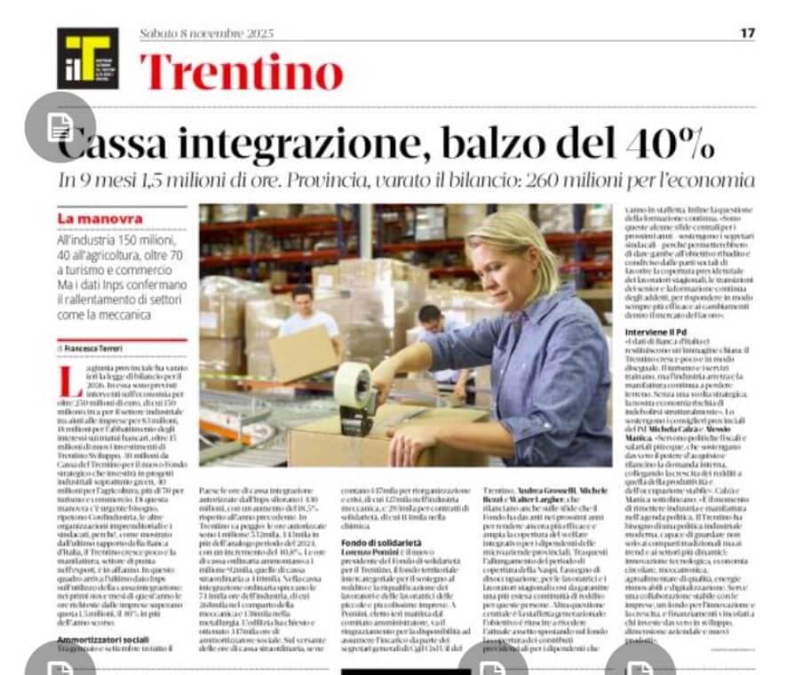Cassa integrazione, al via le domande per l’indennità provinciale La misura di sostegno al reddito spetta a tutti i lavoratori sospesi lo scorso anno con almeno 300 ore di cassa integrazione. Da oggi si può fare richiesta per il secondo ...