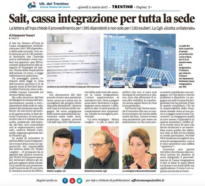 23 marzo 2017 – Trentino, Corriere del Trentino