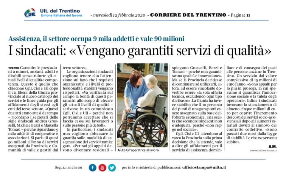 Assistenza. CGIL CISL UIL: “Appalti residuali, si punti su innovazione e tutele per gli operatori sociali” Via libera della Giunta a linee guida sugli affidamenti e nuovo catalogo dei servizi. “Garantire le prestazioni a minori, anziani, adulti e disabili senza ...