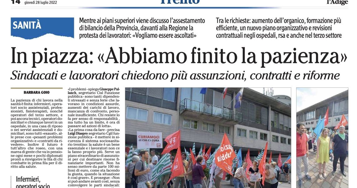 CARENZA INFERMIERI NELLE RSA: ANNOSA QUESTIONE. Personale al collasso: da anni denunciamo la questione. Che le direttive provinciali sulle nostre RSA avessero delle forti criticità è risaputo, che i parametri “base” che la Provincia Autonoma di Trento ha di recente ...