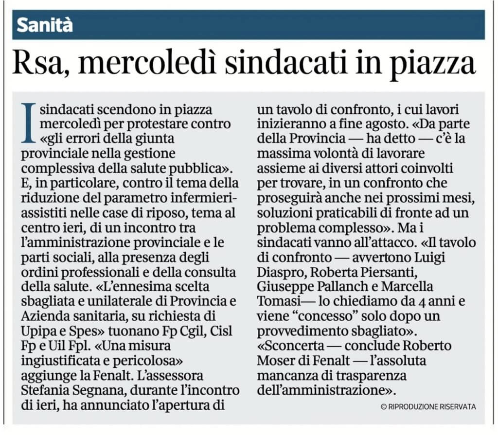 CARENZA INFERMIERI NELLE RSA: ANNOSA QUESTIONE. Personale al collasso: da anni denunciamo la questione. Che le direttive provinciali sulle nostre RSA avessero delle forti criticità è risaputo, che i parametri “base” che la Provincia Autonoma di Trento ha di recente ...