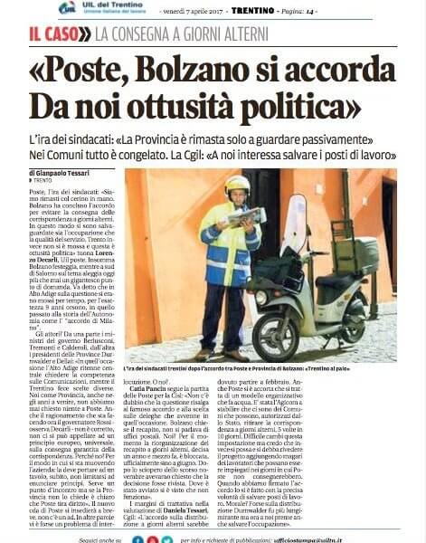 29 novembre 2017 – Trentino, Corriere del Trentino