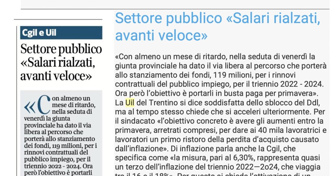 CISL FP e UIL FPL EE.LL. ALL’ASSESSORE TONINA IL RICHIAMO AGLI IMPEGNI PRESI A MARZO 2024 TRENTO. “Bene le parole del Presidente Fugatti dell’11 giugno scorso sui salari e sulla conciliazione vita lavoro, ma è necessaria una risposta le esigenze ...