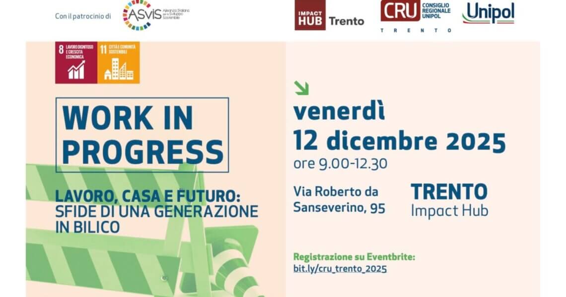 WORK IN PROGRESS – Lavoro, casa e futuro: sfide di una generazione in bilico Il CRU Unipol Trento propone un appuntamento di confronto dedicato ai temi più urgenti del presente: salario minimo ed equo, precarietà, accesso alla casa, caro affitti ...