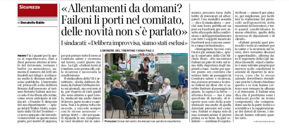 12 giugno 2020 – Trentino, Corriere del Trentino