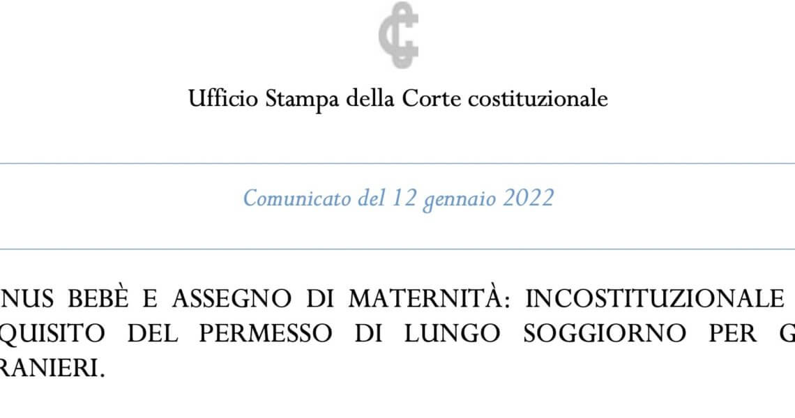 Bonus nascita: il vincolo dei dieci anni contro il diritto europeo e la Costituzione. La Giunta cambi la norma Il Giudice delle Leggi ha giudicato incostituzionali le norme che escludono dal bonus bebè nazionale i genitori stranieri con permesso di ...