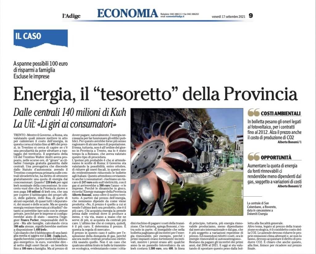 Alotti della UIL :preoccupante aumento di luce e gas. Il sindacato rilancia la richiesta di agevolazioni alle famiglie trentine, possibile per l’energia idroelettrica prodotta in Trentino. Trento 14/09/2021 – Comunicato stampa Uil del Trentino- . L’impennata del prezzo di luce ...