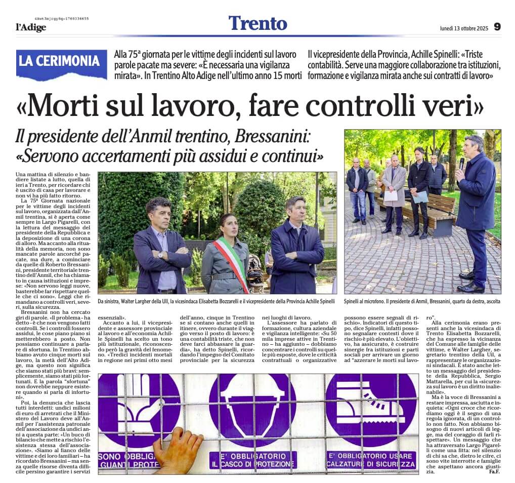 Morti sul lavoro – Continua la scia di sangue dei morti sul lavoro. È di queste ultime ore l’ennesimo tragico dramma di un boscaiolo rumeno morto sul lavoro in ambito boschivo in Val Sadole, a Ziano di Fiemme. Esprimiamo profondo ...