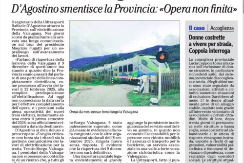 Leggi TuttoRiapertura della Ferrovia della Valsugana il 9 dicembre 2025? Dall’elettrificazione alla semplice predisposizione. Una breve pausa per programmare nuove chiusure nel 2026 e non solo.